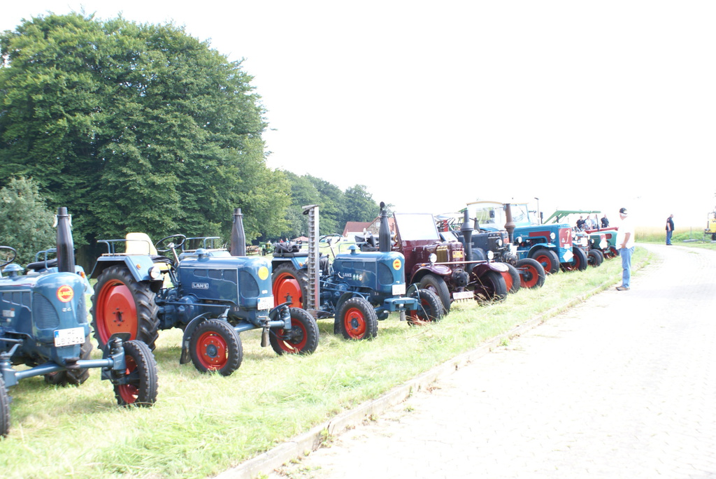 Mit dem 4. Trecker- und Oldtimertreffen zogen wir von der Veranstaltungswiese auf den benachbarten Acker um. Hier schlugen die Teilnehmer und Händler Ihr Lager auf. Für die Ausstellung reihten sich die Oldtimer wie gewohnt auf den Grünflächen auf. Diese Maßnahme verschaffte der Veranstaltung nicht nur mehr Platz, sondern auch wesentlich kürzere Wege für Wasser und Strom. Zusätzlich konnte die Remise der Familie Mügge zum Feiern und Verweilen genutzt werden.