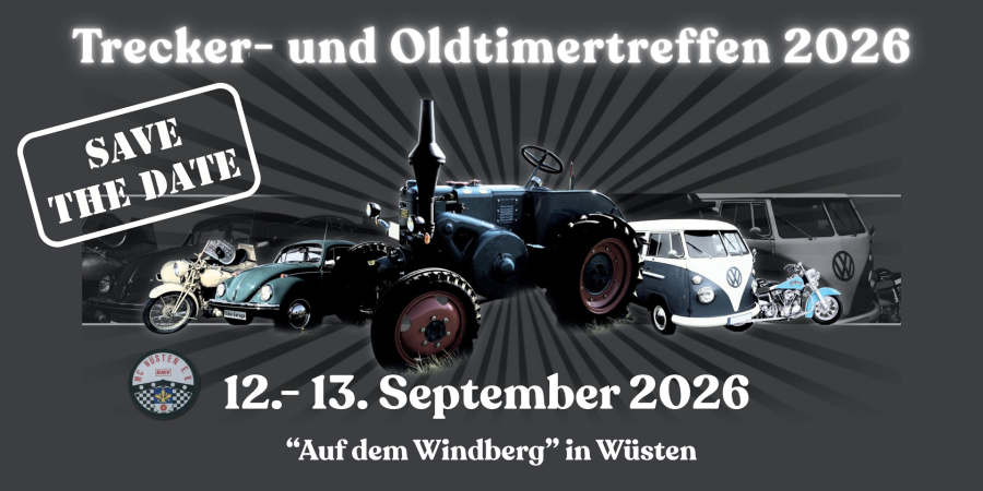 Unsere Trecker- und Oldtimertreffen auf dem Windberg sind besondere Veranstaltungen des MC Wüsten e. V. im DMV, bei denen sich Liebhaber historischer Maschinen und Fahrzeuge aus Nah und Fern zusammenfinden.